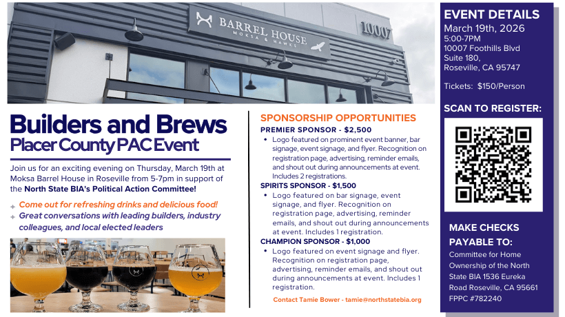 Join us for a lively evening on Thursday March 19th from 5-7PM at Moksa Barrel House in Roseville in support of the North State BIA Political Action Committee!